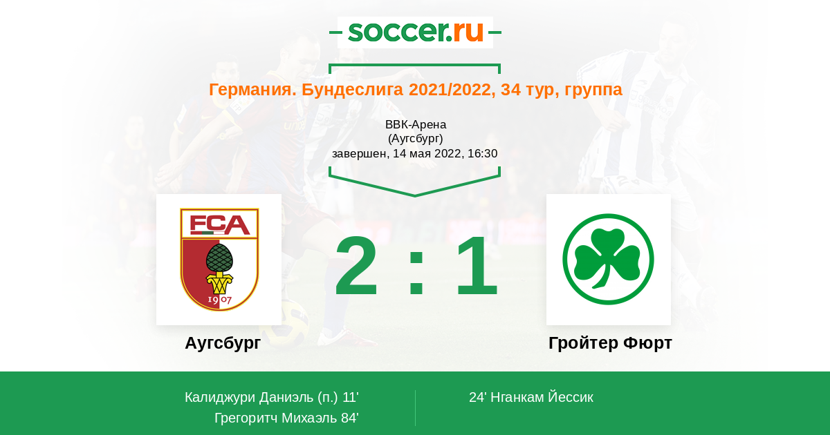Протокол матча Аугсбург против Гройтер Фюрт