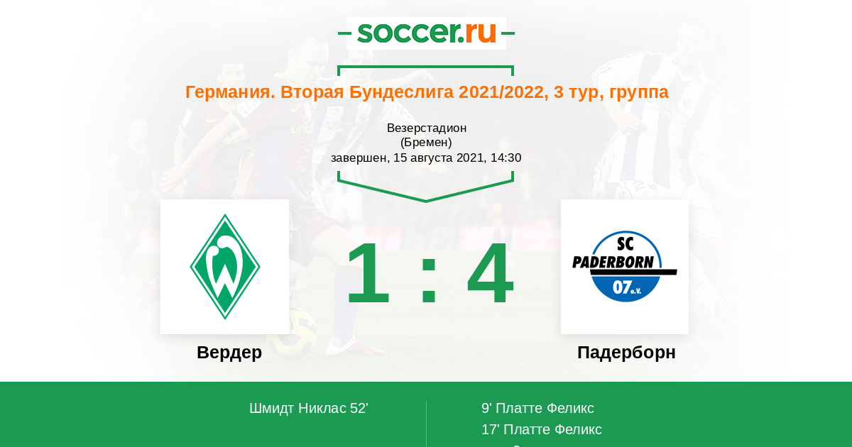 Матчи между этими командами проходят обычно весело и результативно . К примеру в 20-м году Вердер победил в гостях 5 : 1 . Найдеюсь команды в этом матче не поскупятся на голы уже в первом тайме!