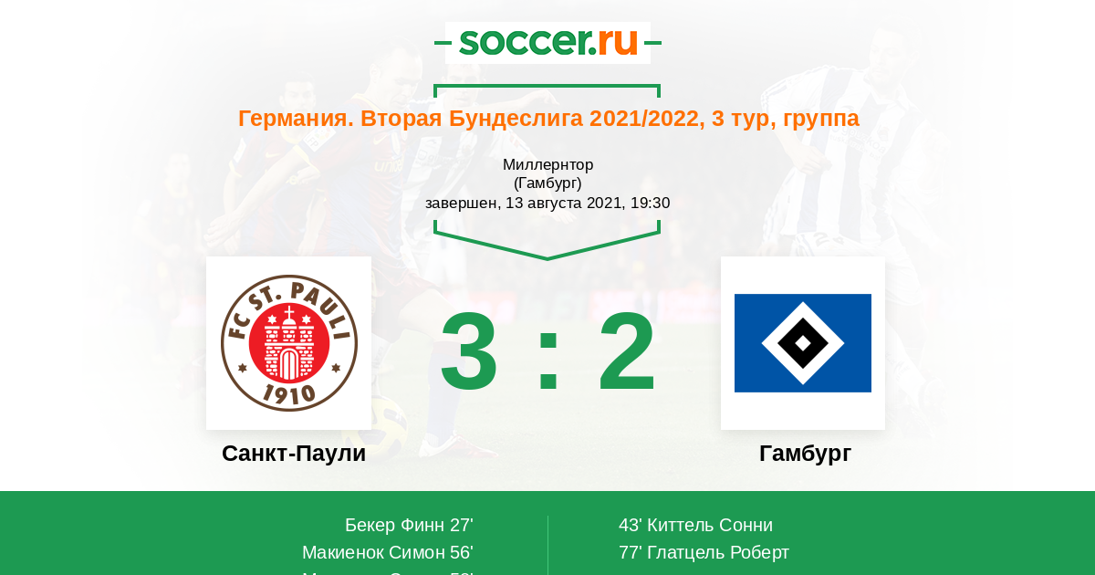 Протокол матча Санкт-Паули против Гамбург