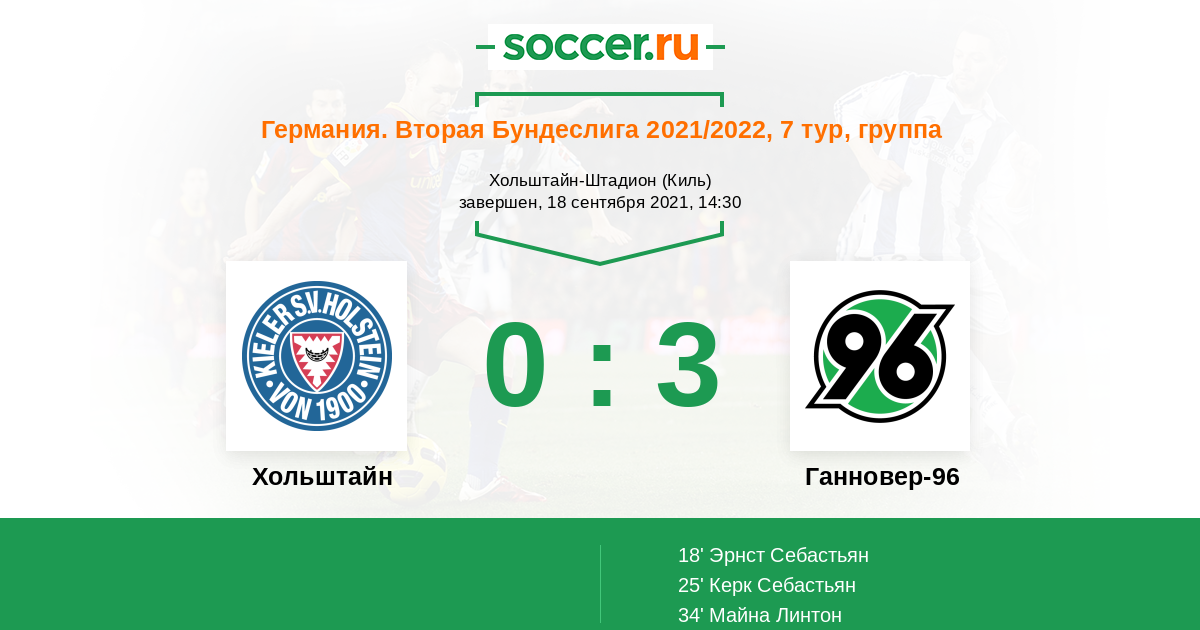 Протокол матча Хольштайн против Ганновер-96