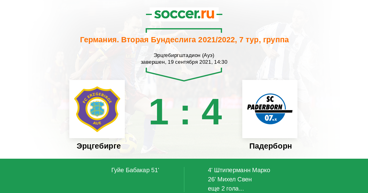 Протокол матча Эрцгебирге против Падерборн