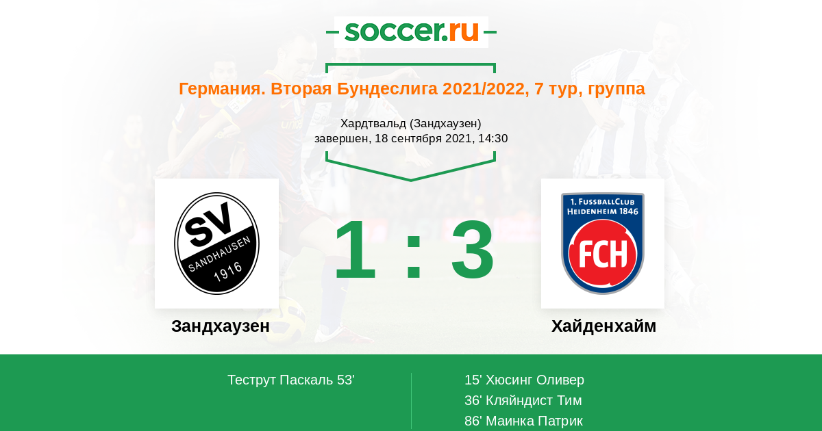 15' (0:1) Хюсинг Оливер (5) (Томалла Денис (11))