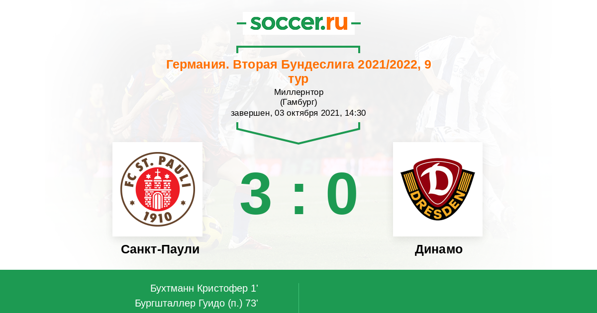 Протокол матча Санкт-Паули против Динамо