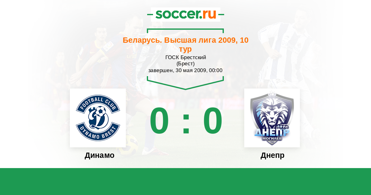 Беларусь. Высшая лига 17.10.2009 Днепр Логотип футбольный клуб Днепр (Могилев) 0:0 Логотип футбольный клуб Динамо (Брест) Динамо