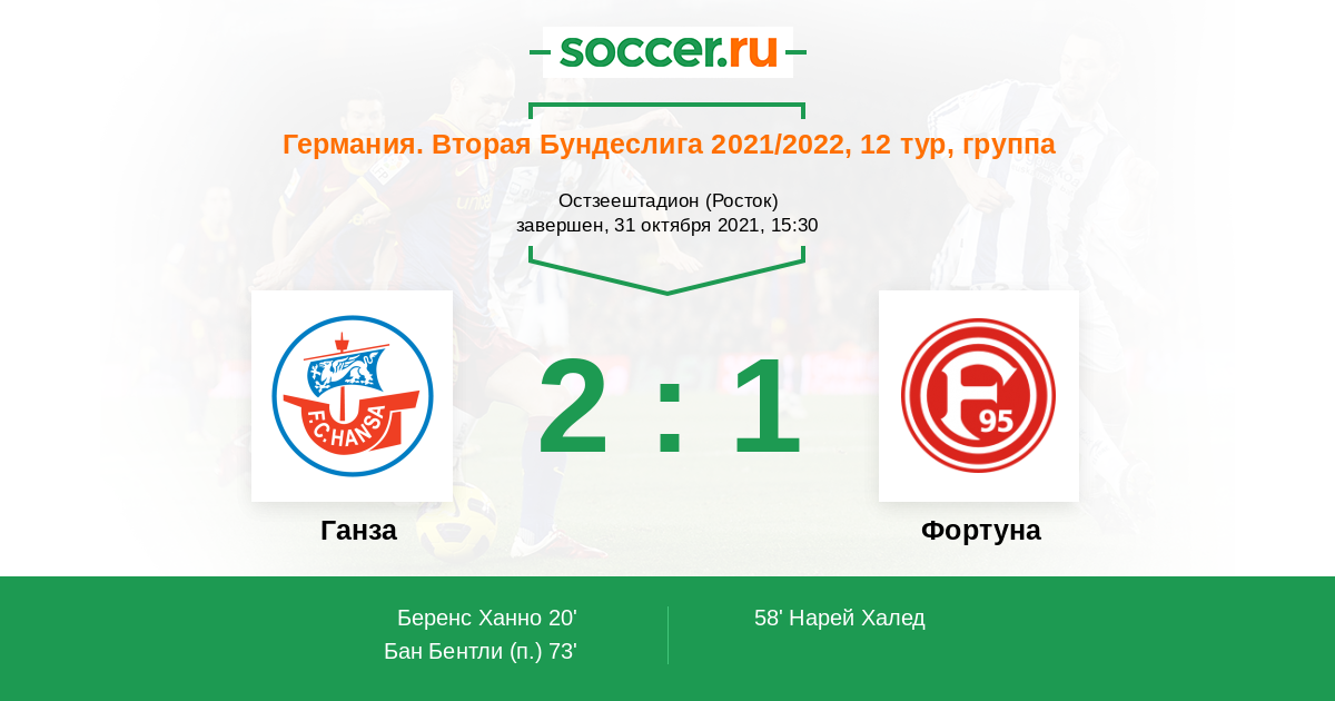 Протокол матча Ганза против Фортуна
