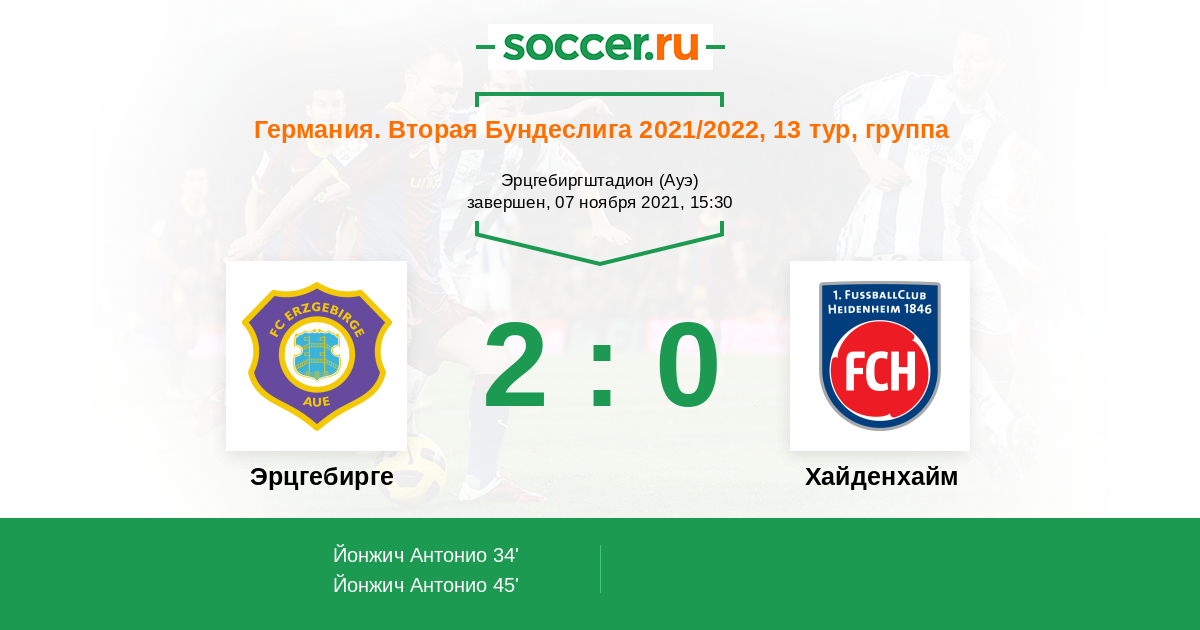 Протокол матча Эрцгебирге против Хайденхайм
