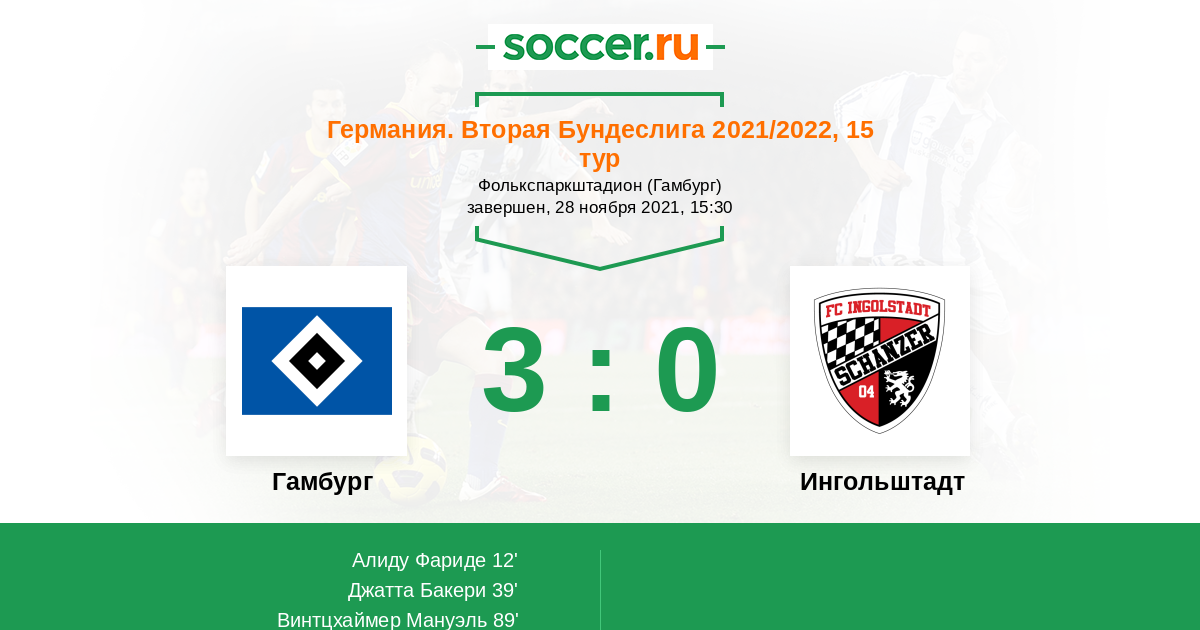 Протокол матча Гамбург против Ингольштадт