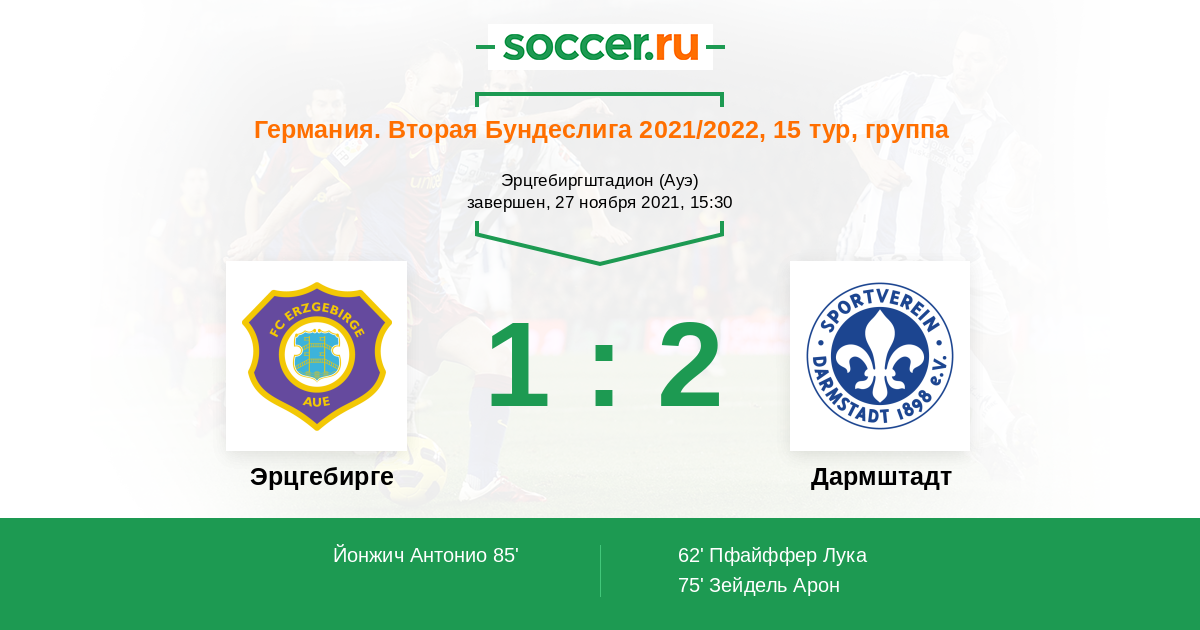 Протокол матча Эрцгебирге против Дармштадт