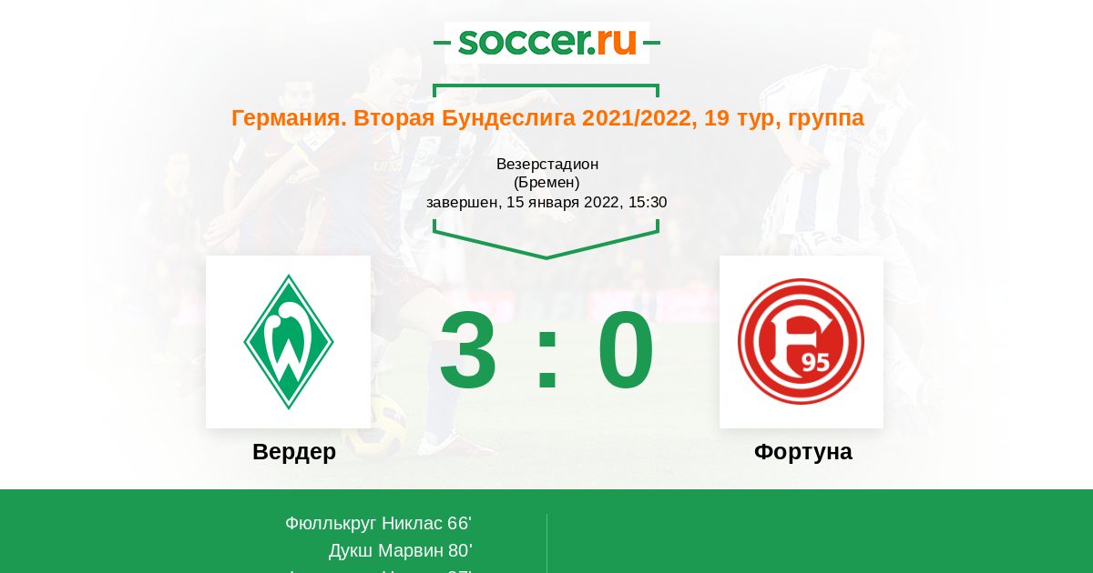 Протокол матча Вердер против Фортуна