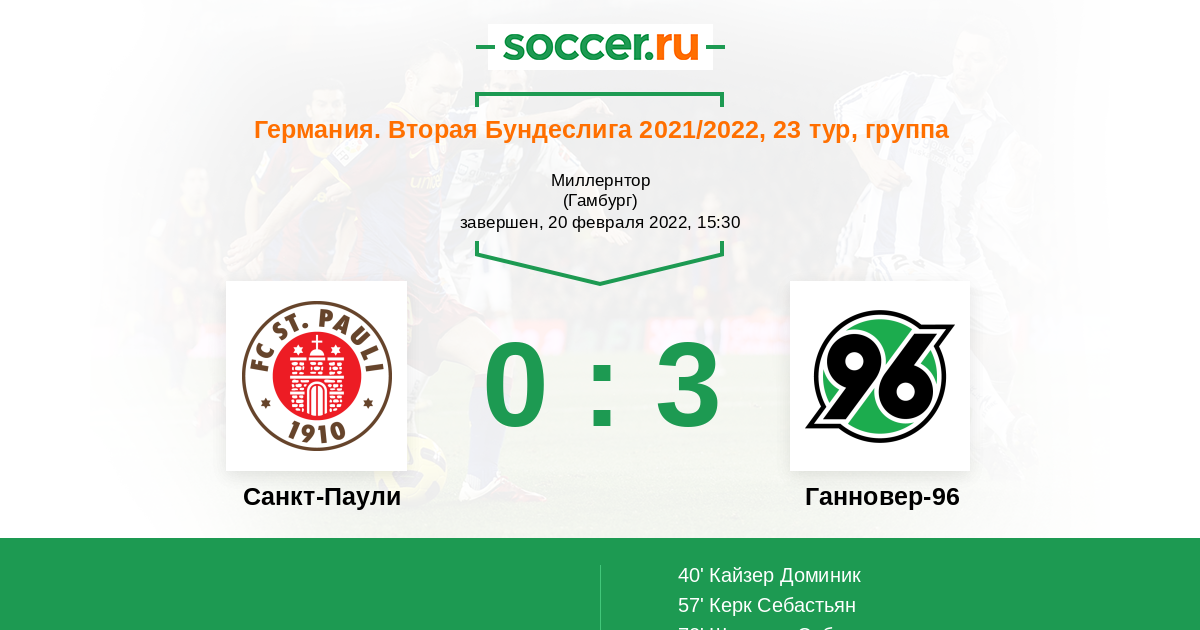 40' (0:1) Кайзер Доминик (13) (Тойхерт Седрик (15))