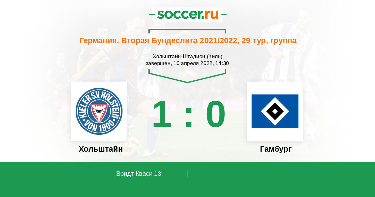 Протокол матча Хольштайн против Гамбург