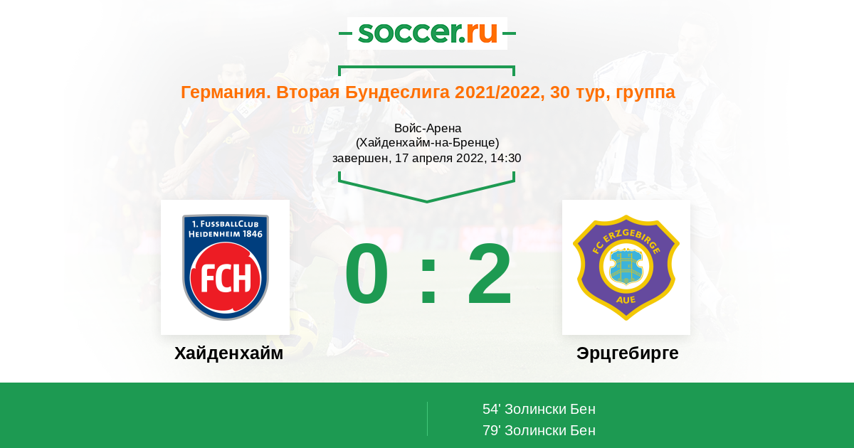 Протокол матча Хайденхайм против Эрцгебирге