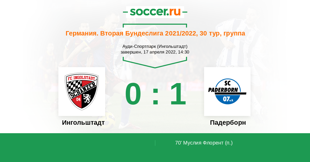 Протокол матча Ингольштадт против Падерборн