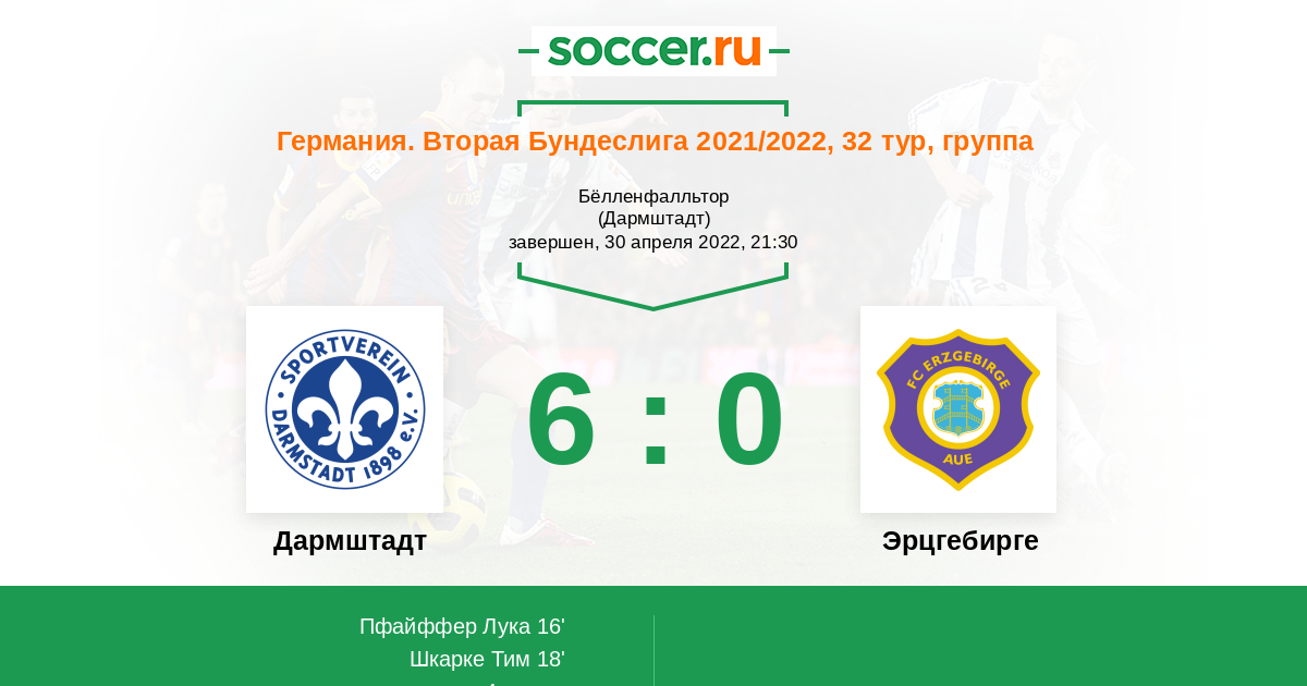 Протокол матча Дармштадт против Эрцгебирге