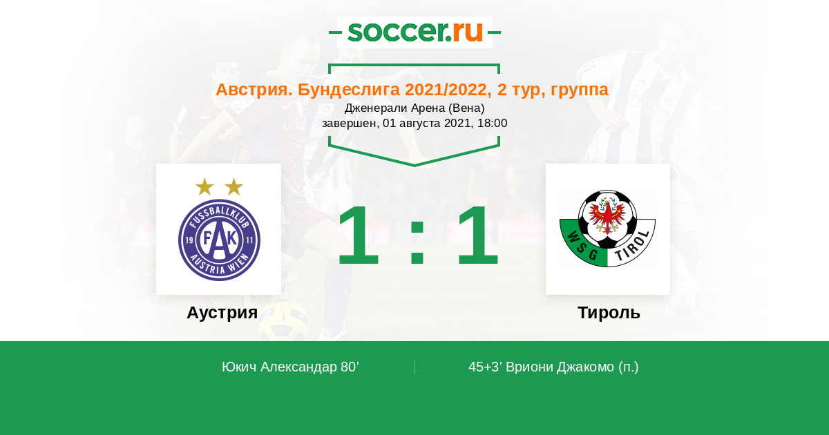 Протокол матча Аустрия против Тироль