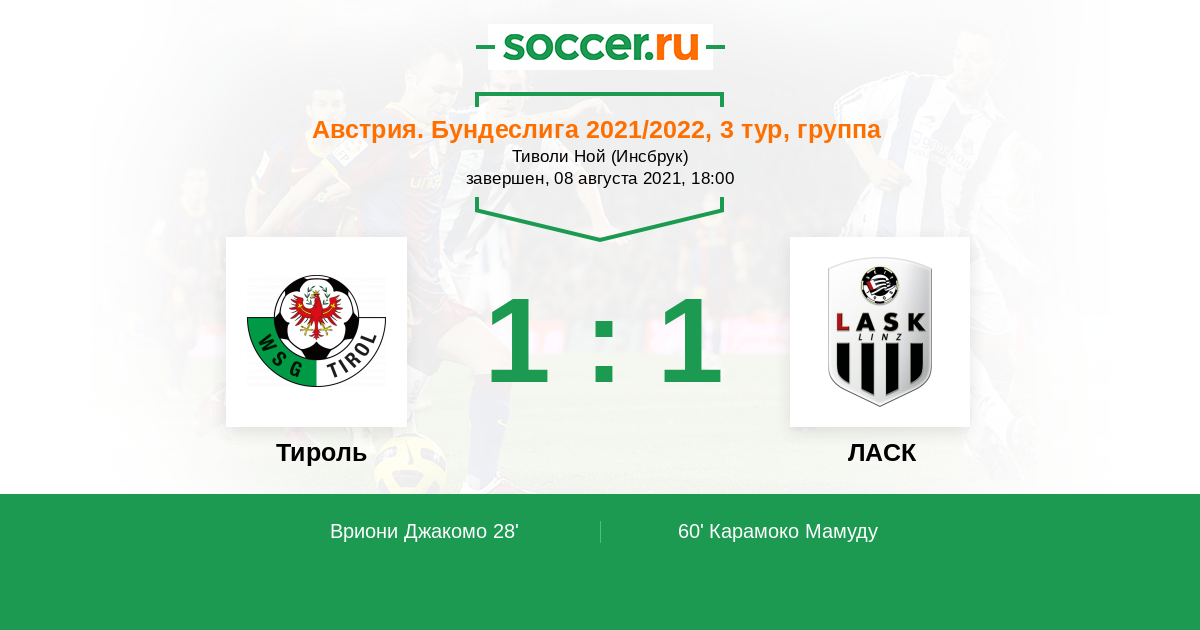 Протокол матча Тироль против ЛАСК