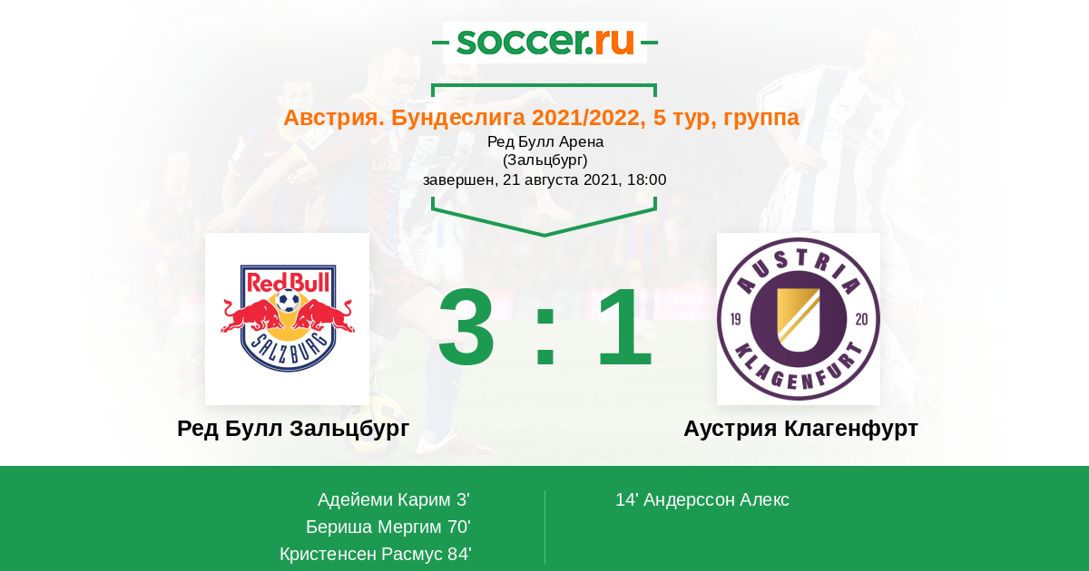 Протокол матча Ред Булл Зальцбург против Аустрия Клагенфурт