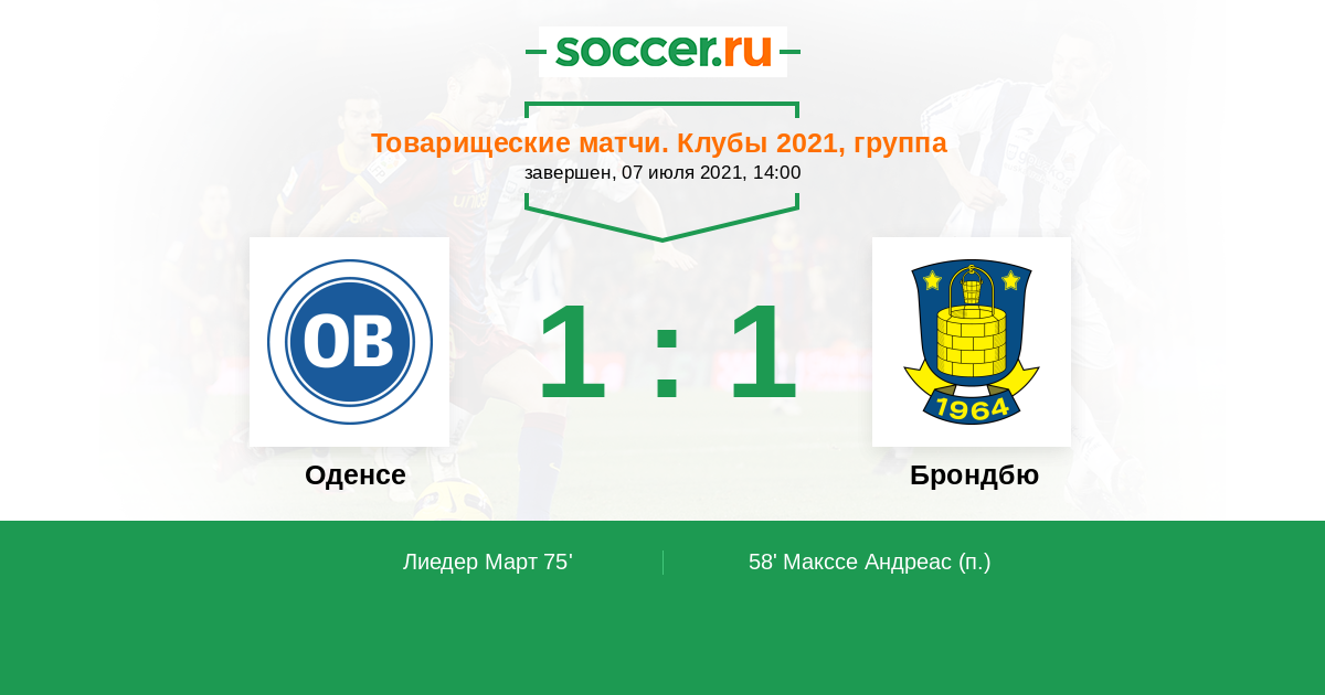 Протокол матча Оденсе против Брондбю