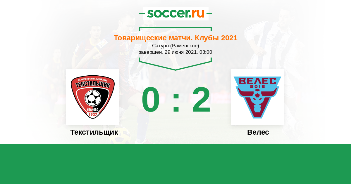 История матча Текстильщик против Велес