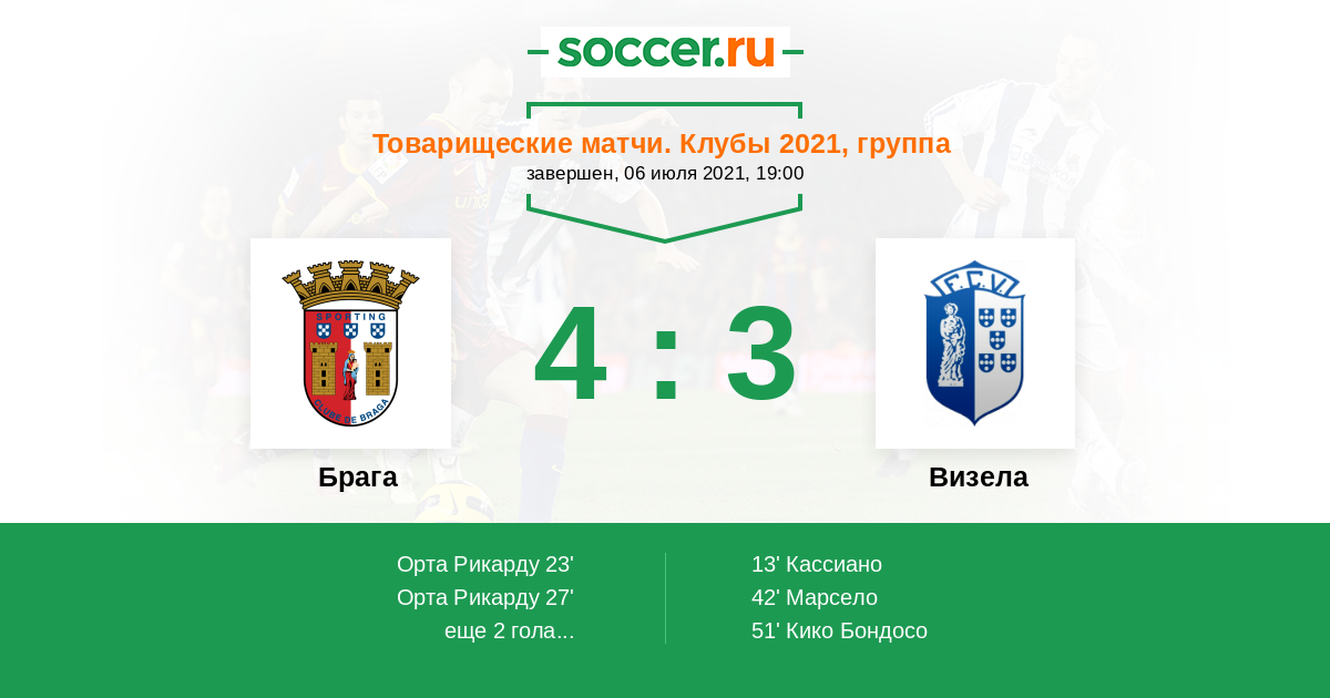 Протокол матча Брага против Визела