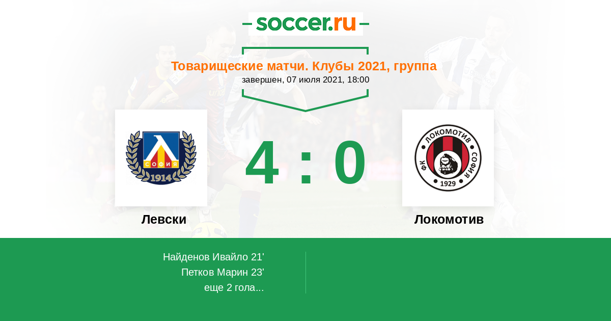 Протокол матча Левски против Локомотив