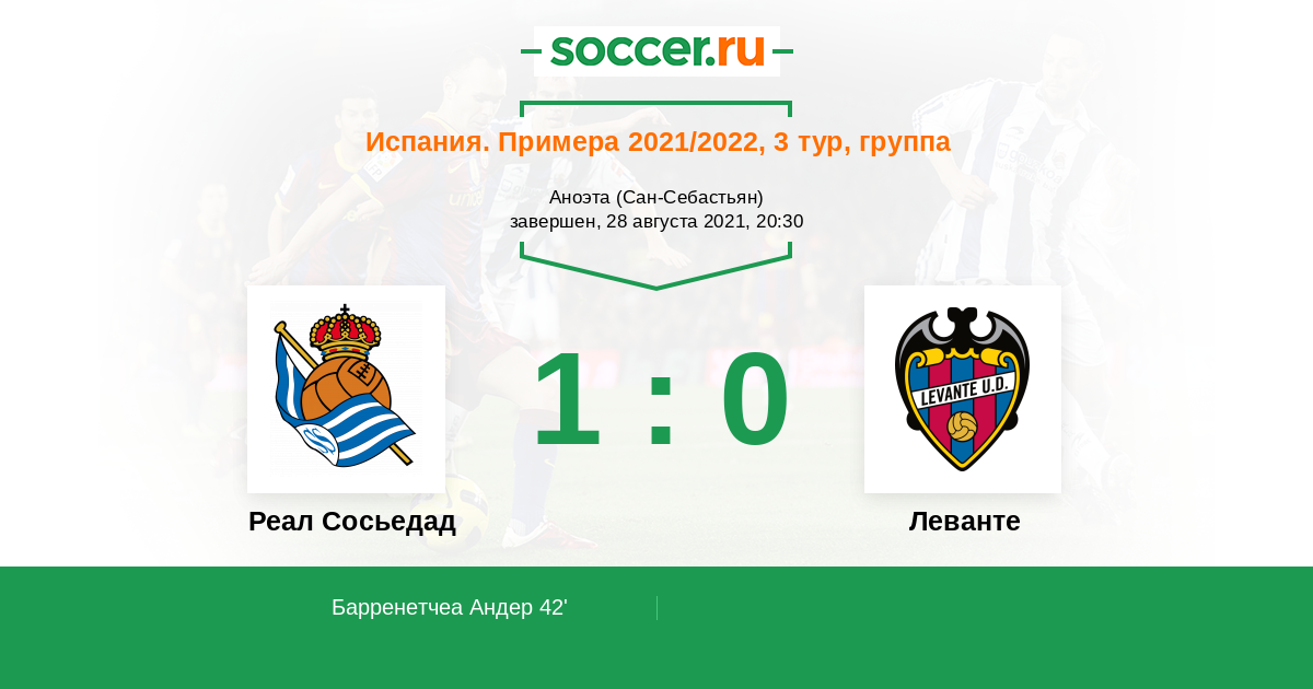 Протокол матча Реал Сосьедад против Леванте