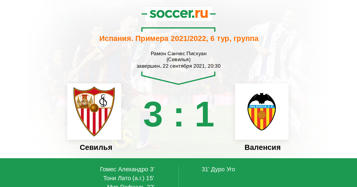 Протокол матча Севилья против Валенсия