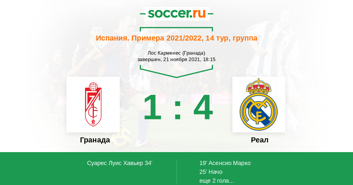 "Реал" обыгрывает "Гранаду" уже на протяжении 12 матчей кряду, в сезоне-2020/21 "сливочные" одержали две победы с общим счётом 6:1, так что в предстоящем матче наиболее вероятной будет уверенная виктория "Реала".