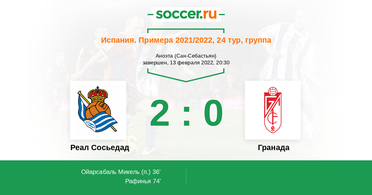 Протокол матча Реал Сосьедад против Гранада