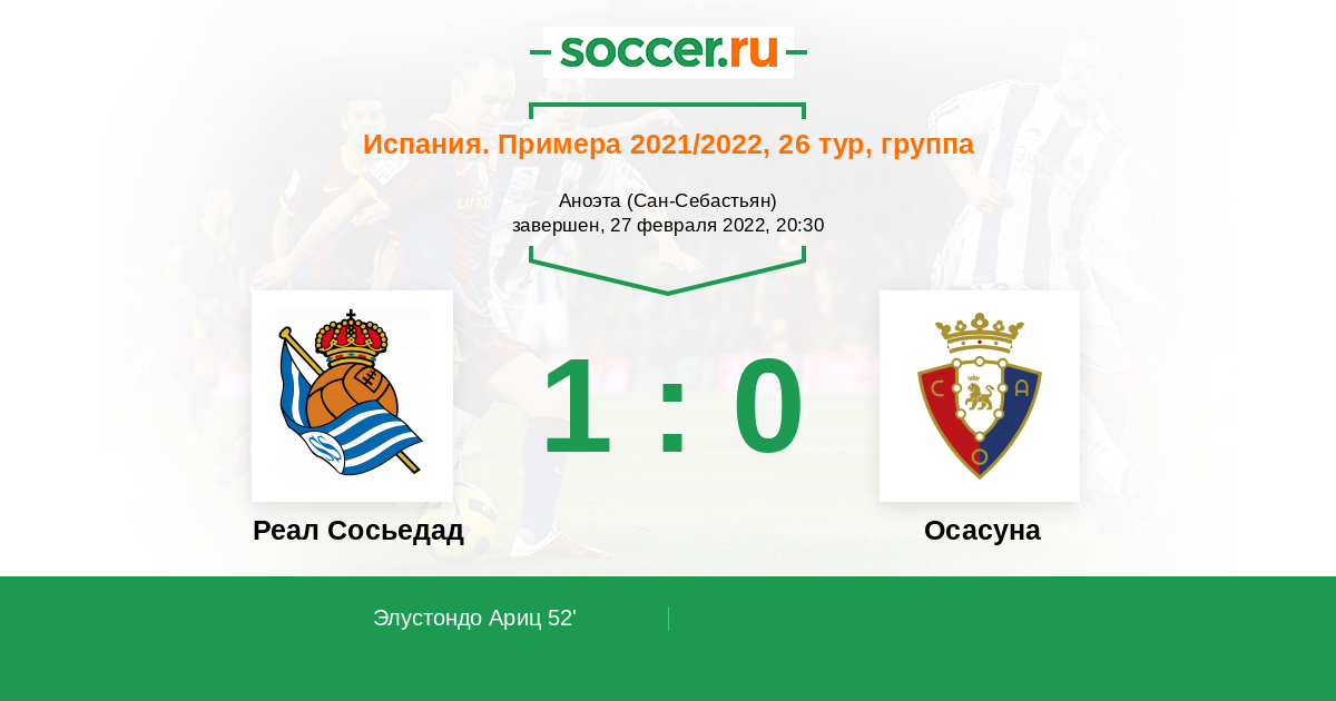 52' (1:0) Элустондо Ариц (6) (Исак Александер (19))