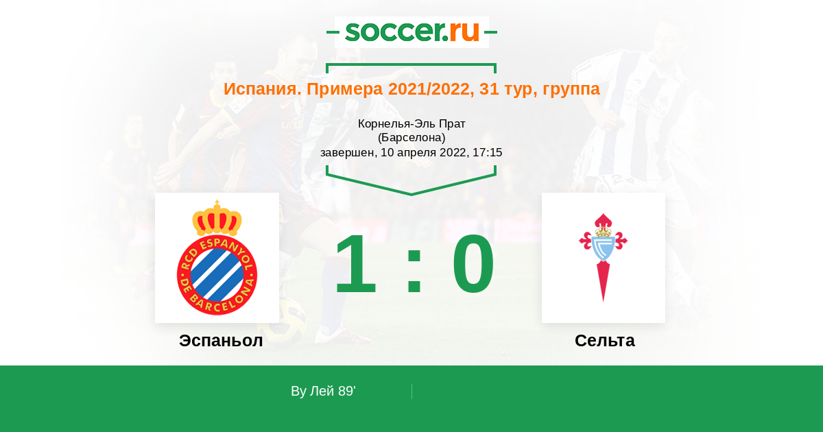 Протокол матча Эспаньол против Сельта