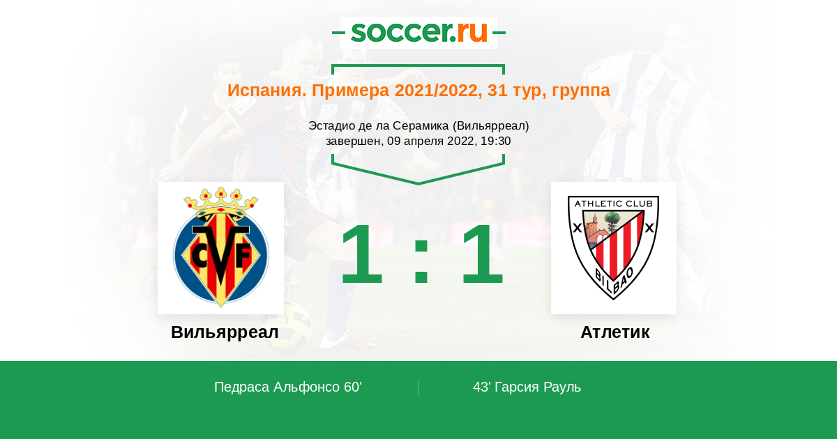 Протокол матча Вильярреал против Атлетик