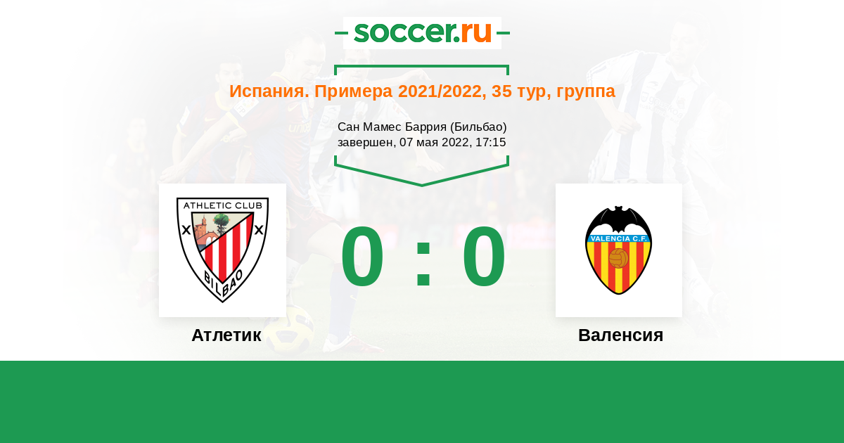 Протокол матча Атлетик против Валенсия