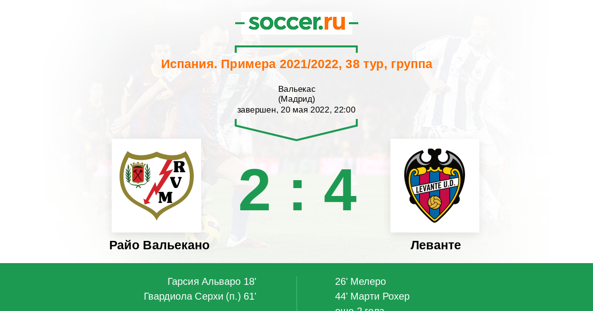 Протокол матча Райо Вальекано против Леванте