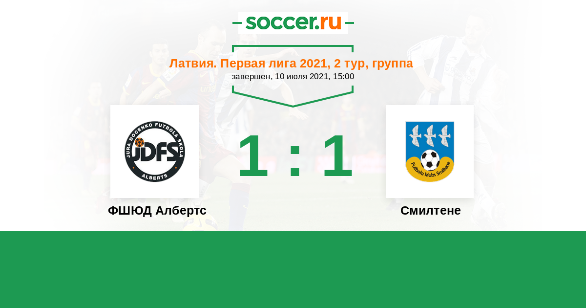 Латвия. Первая лига 25.09.2021 Смилтене Логотип футбольный клуб Смилтене 1:1 Логотип футбольный клуб ФШЮД Албертс (Рига) ФШЮД Албертс