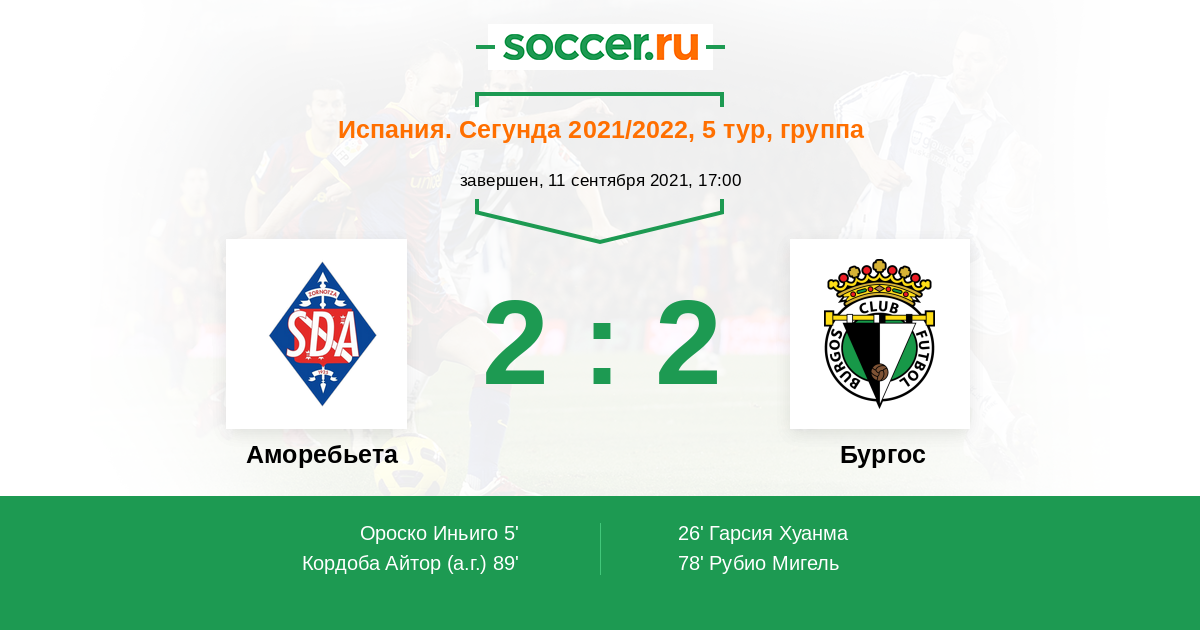 Протокол матча Аморебьета против Бургос