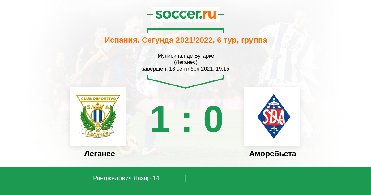 Протокол матча Леганес против Аморебьета