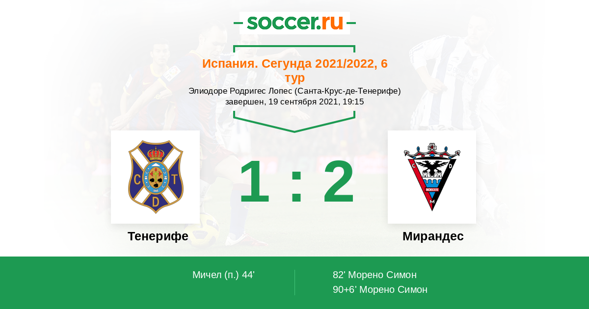 Протокол матча Тенерифе против Мирандес