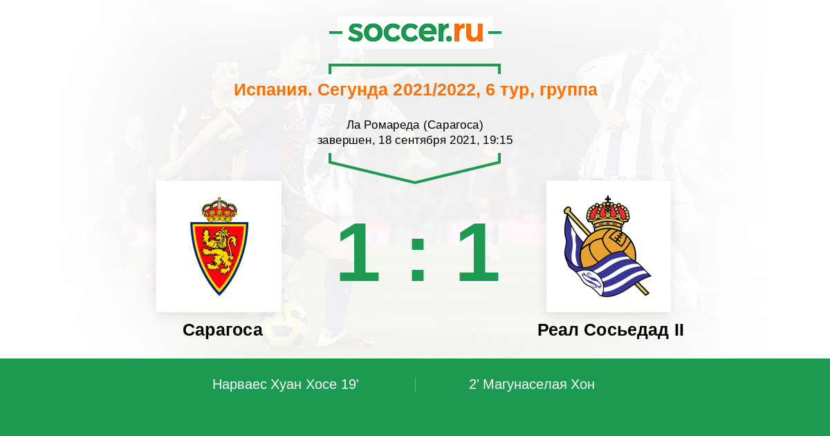 Протокол матча Сарагоса против Реал Сосьедад II