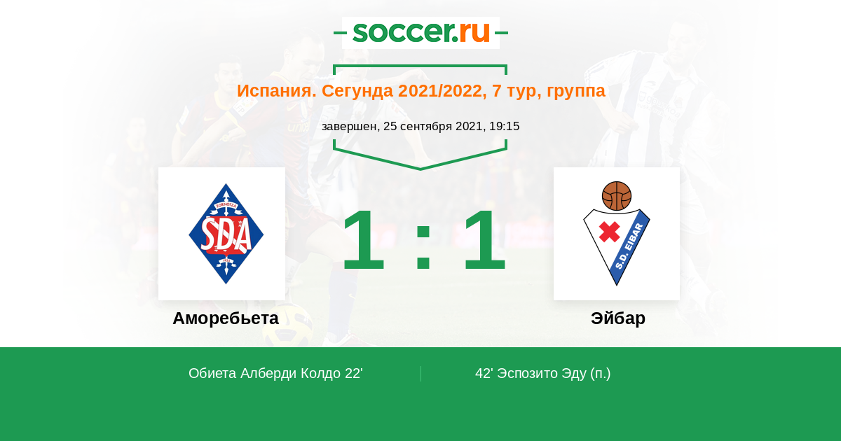 22' (1:0) Обиета Алберди Колдо (9) (Бильбао Икер (6))