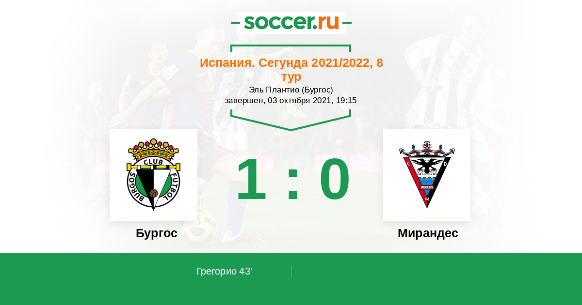 Протокол матча Бургос против Мирандес