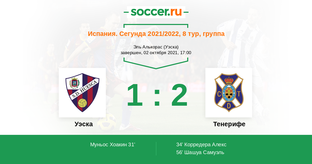 Протокол матча Уэска против Тенерифе