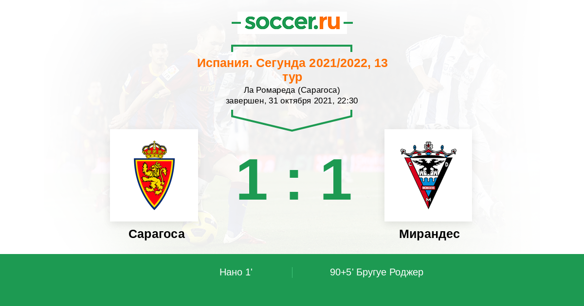 Протокол матча Сарагоса против Мирандес
