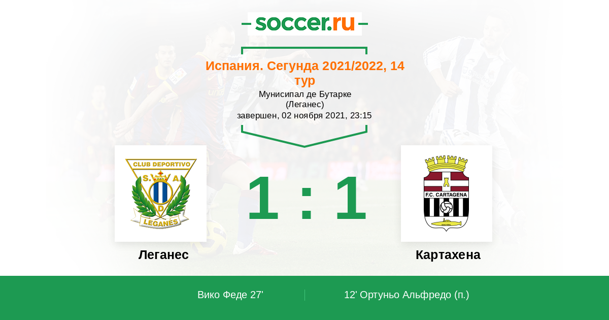Протокол матча Леганес против Картахена