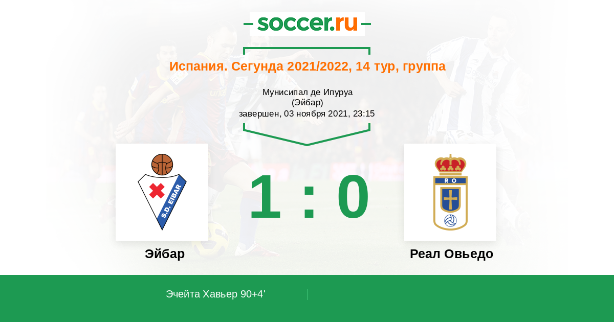 Протокол матча Эйбар против Реал Овьедо