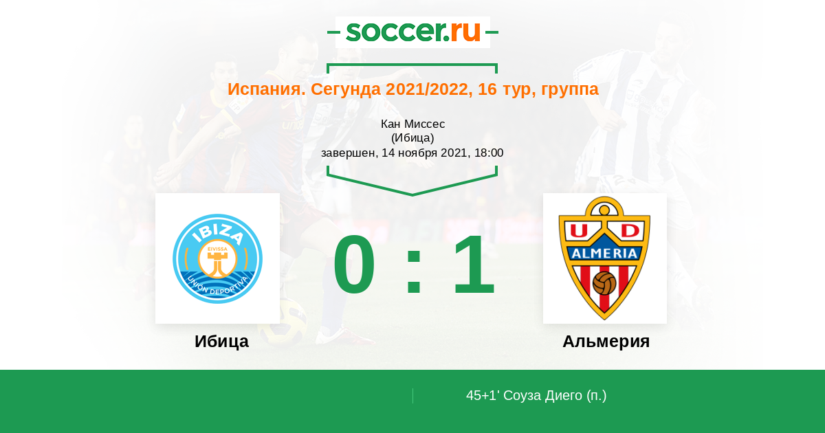 Протокол матча Ибица против Альмерия