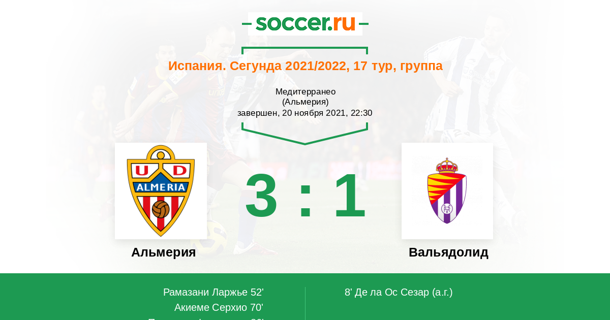 Протокол матча Альмерия против Вальядолид
