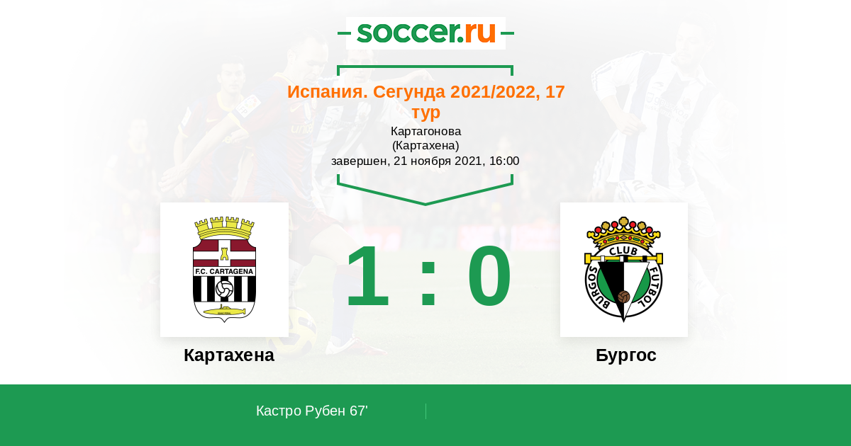 Протокол матча Картахена против Бургос