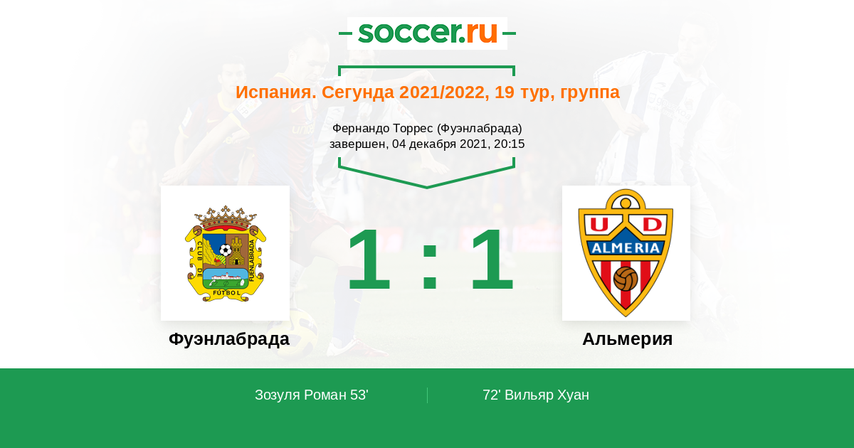 72' (1:1) Вильяр Хуан (7) (Мартинес Арнау (26))