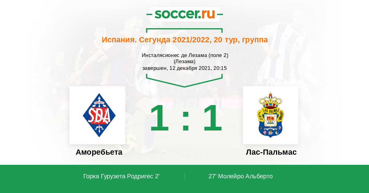 Протокол матча Аморебьета против Лас-Пальмас